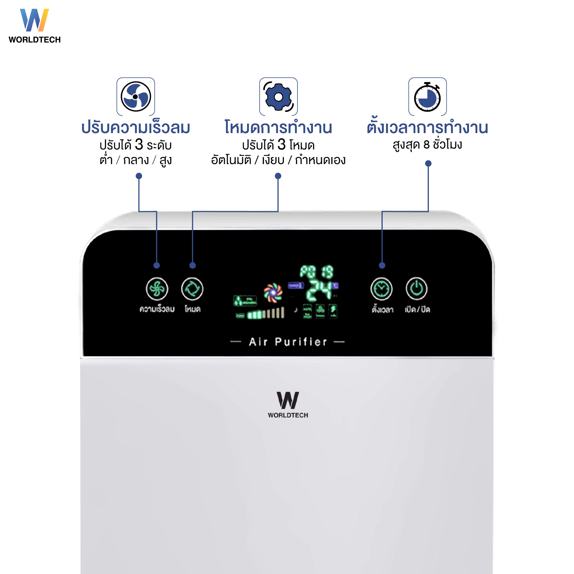 Worldtech เครื่องฟอกอากาศ Air Purifier รุ่น WT-P40 มอก.รับรอง + รีโมท
