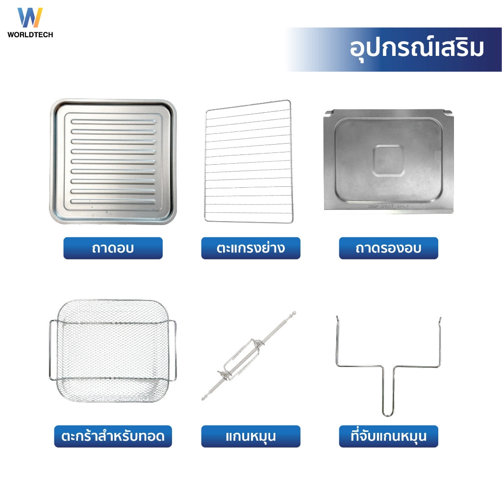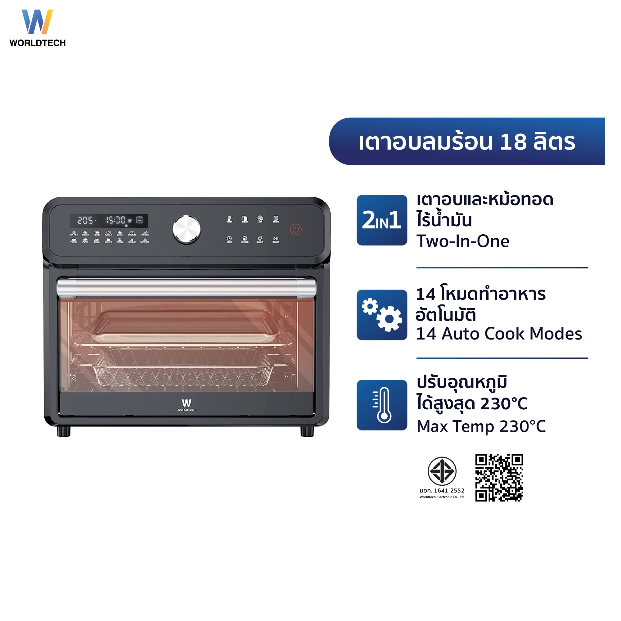 Worldtech เตาอบ ลมร้อนอเนกประสงค์ ความจุ 18 ลิตร 14 โปรแกรม ความจุใหญ่ ฟังก์ชันครบ พร้อมจอ LED รุ่น WT-TO5719
