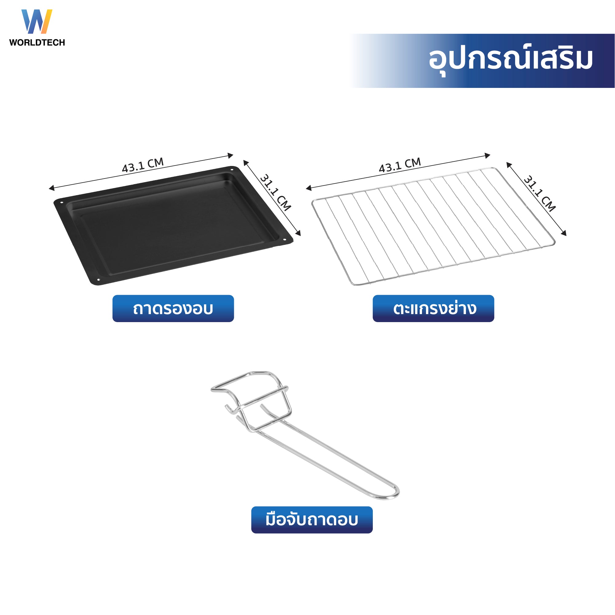 • อุปกรณ์เสริม: ถาดอบ, ตะแกรงอบ, ด้ามจับสำหรับถาดและตะแกรง