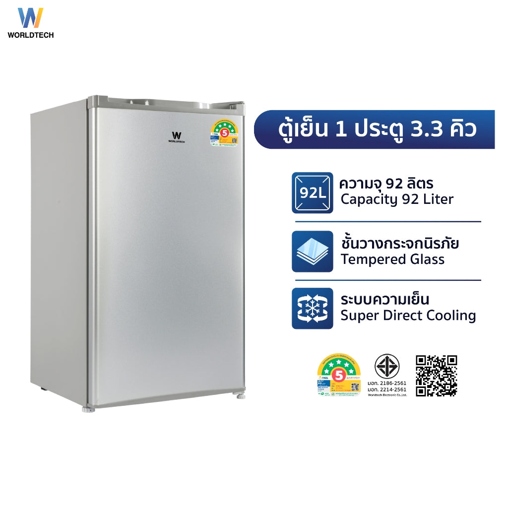 Worldtech ตู้เย็น 3.3 คิว ความจุ 92 ลิตร ตู้เย็นขนาดเล็ก รุ่น WT-RF101