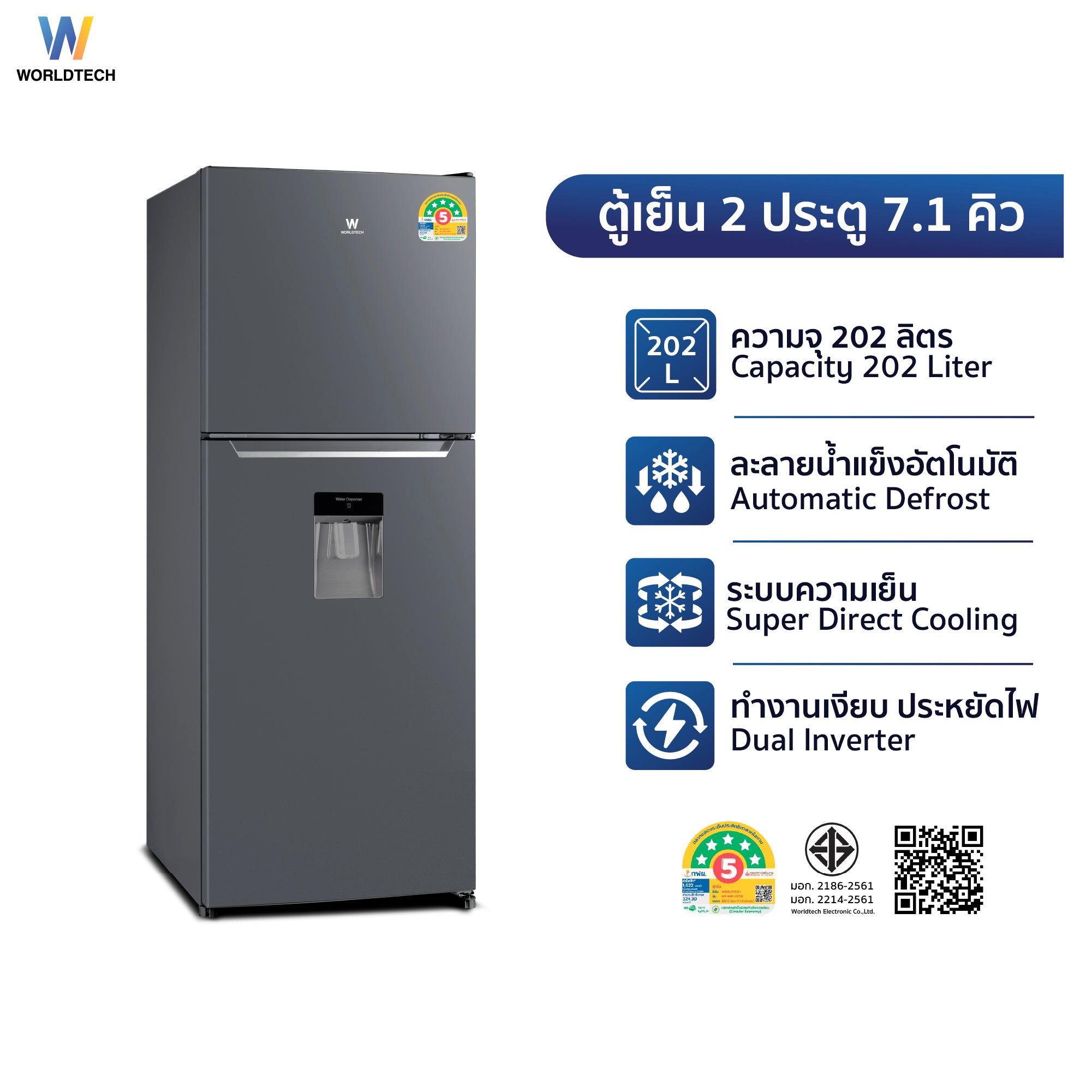 ตู้เย็น 2 ประตู Worldtech 7.1 คิว 202 ลิตร รุ่น WT-MRF-225W_SIL