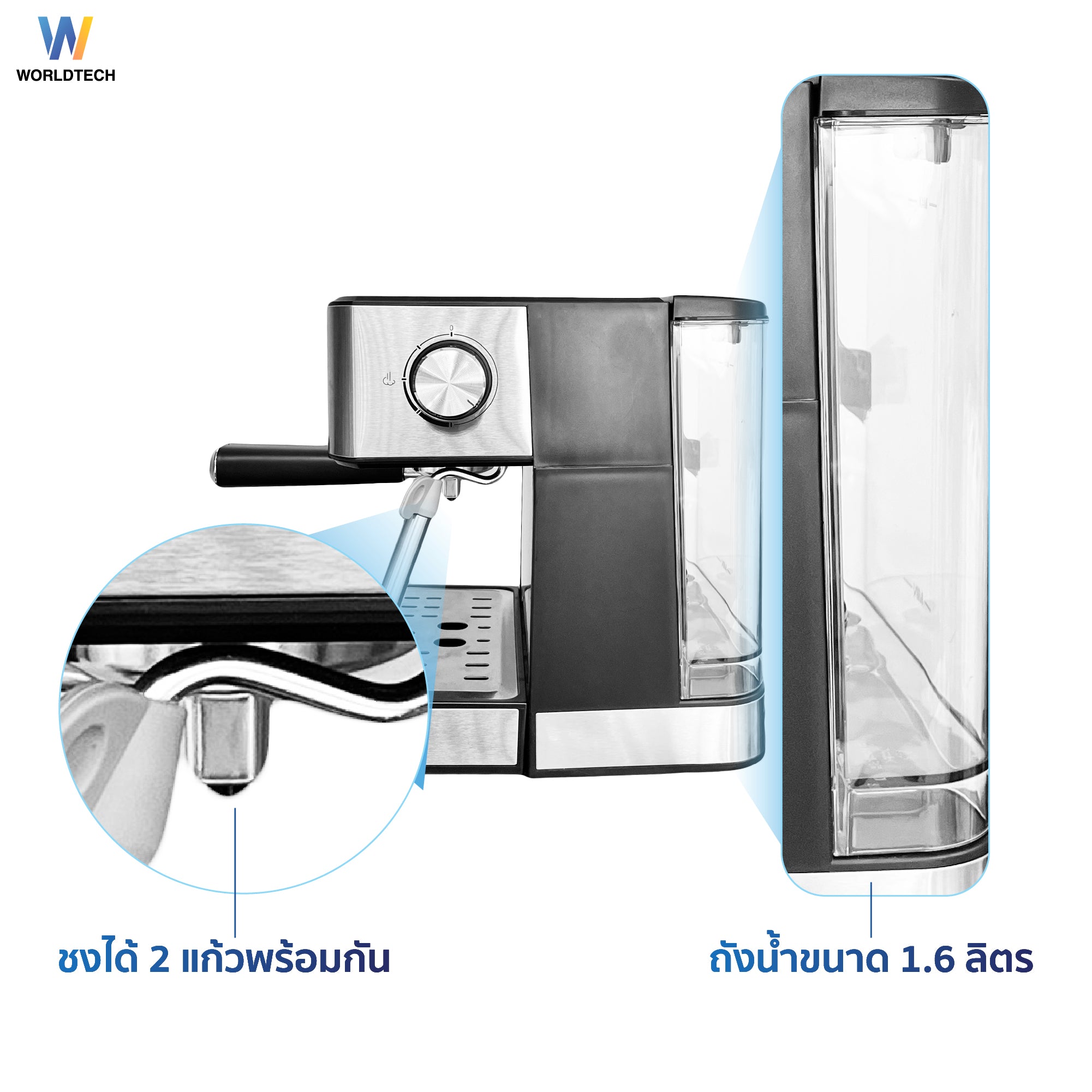 Worldtech Xpresso เครื่องชงกาแฟกึ่งอัตโนมัติ เครื่องชงกาแฟสด เอสเปรสโซ่ แรงดัน 20 บาร์ รุ่น WT-CM404