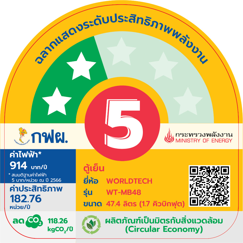 Worldtech ตู้เย็น มินิบาร์ 1.7 คิว ความจุ 46 ลิตร รุ่น WT-MB48