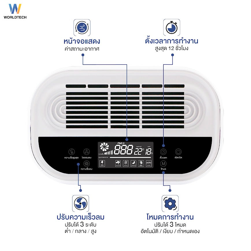 Worldtech เครื่องฟอกอากาศ Air Purifier สำหรับห้องขนาด 40-55 ตร.ม. รุ่น WT-P80