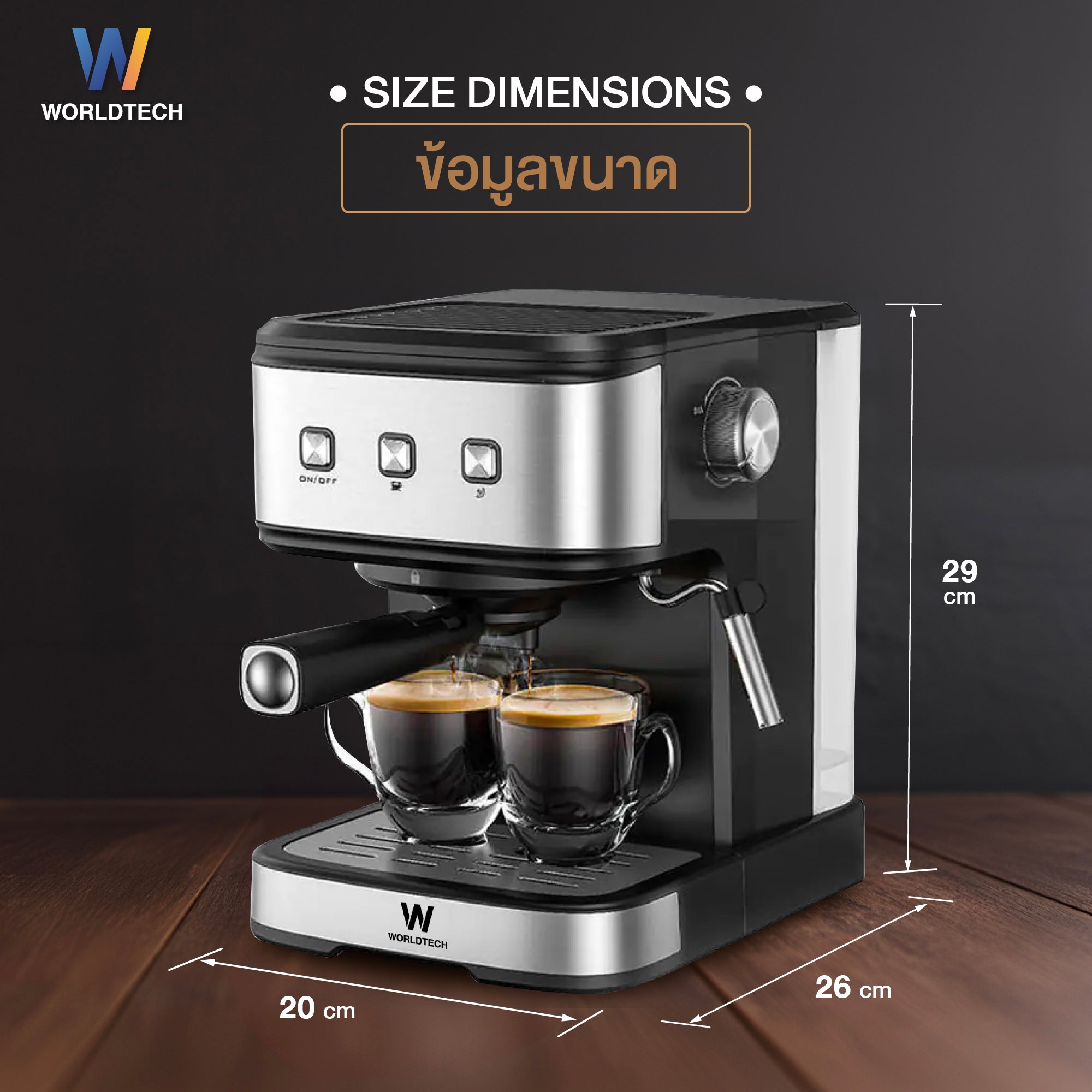 ✅ Worldtech เครื่องทำกาแฟ Espresso ปรับความเข้มข้นของกาแฟได้ สกัดด้วยแรงดันสูง 15 บาร์