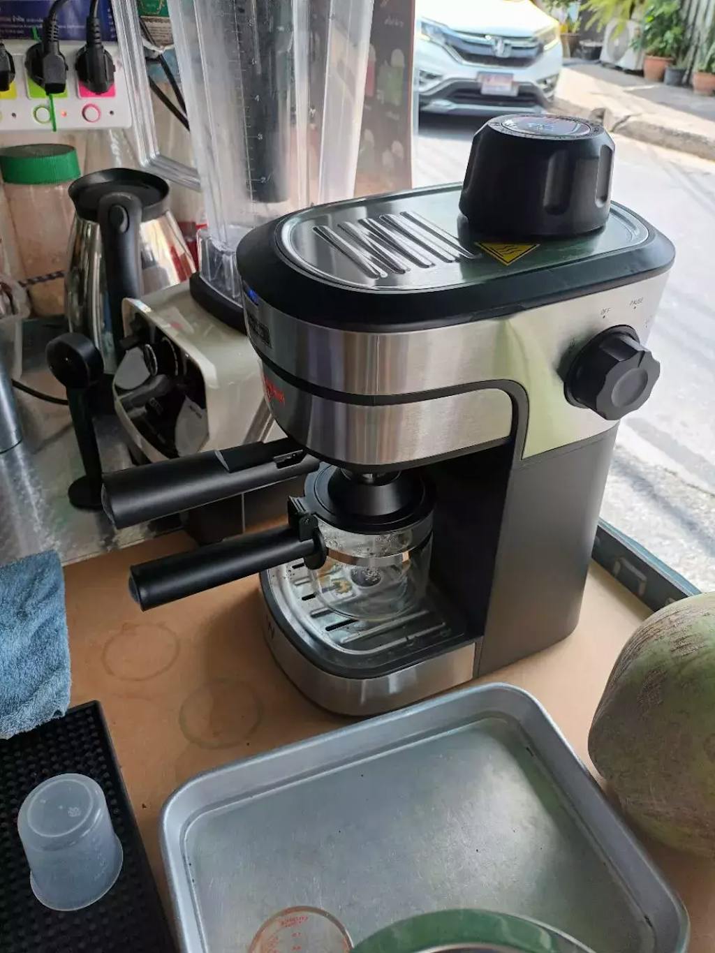 เครื่องชงกาแฟ ใช้งานง่าย สะดวกสบาย กันกาแฟได้มีความหอมฟุ้ง เครื่องเล็กกะทัดรัด น้ำเดือดไว มีการตีฟองนมได้ดี
