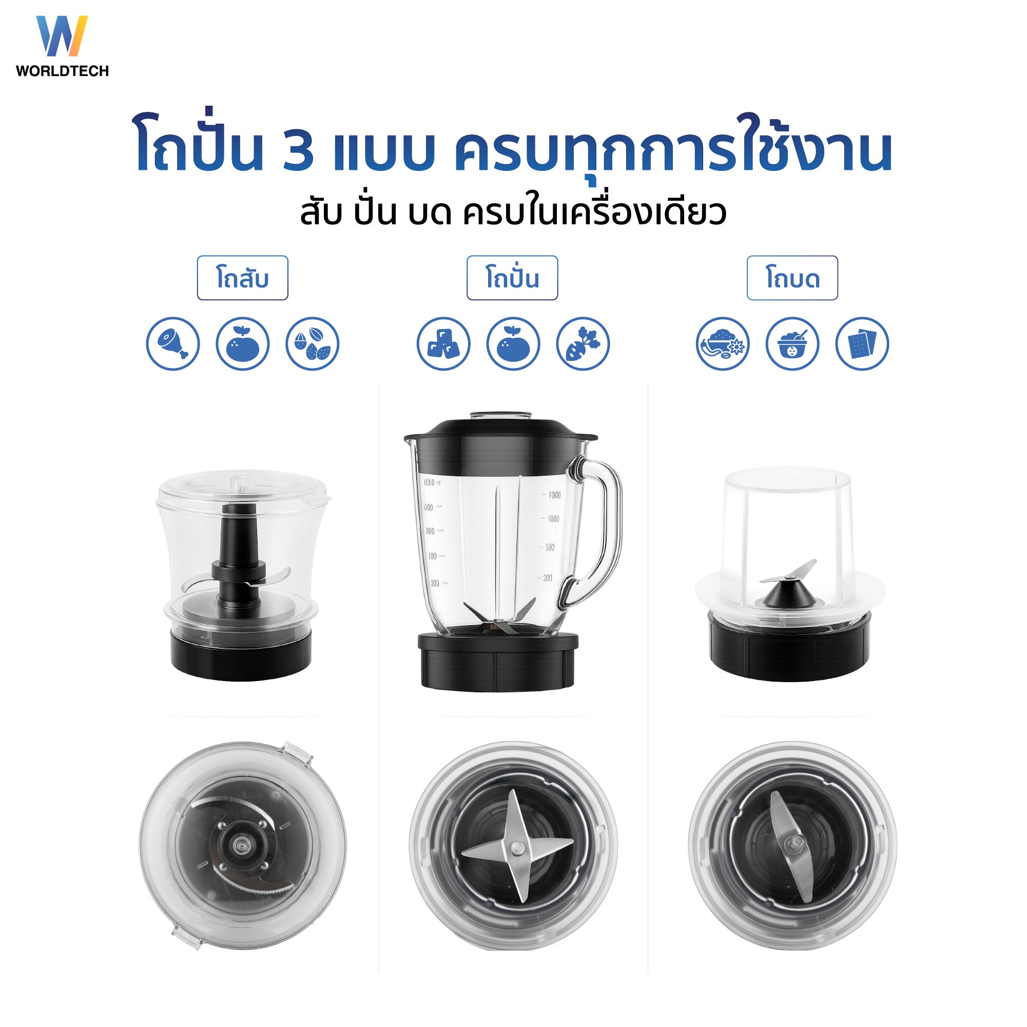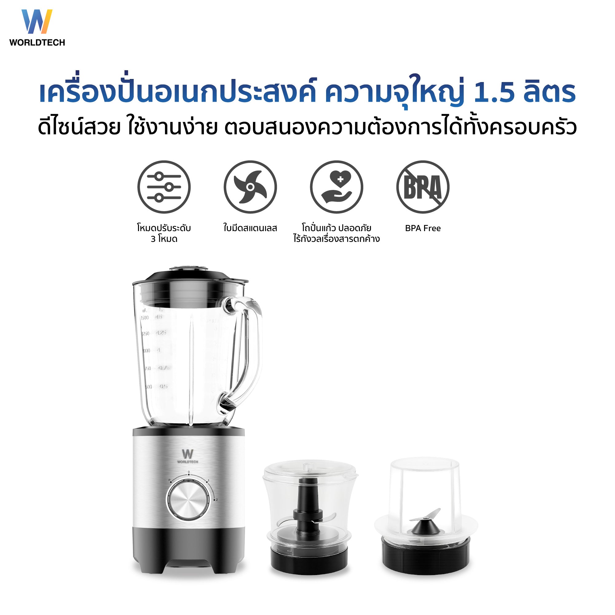 Worldtech เครื่องปั่นน้ำผลไม้ 500W จุ 1.5L. รุ่น เครื่องปั่นอเนกประสงค์ รุ่น WT-PB500