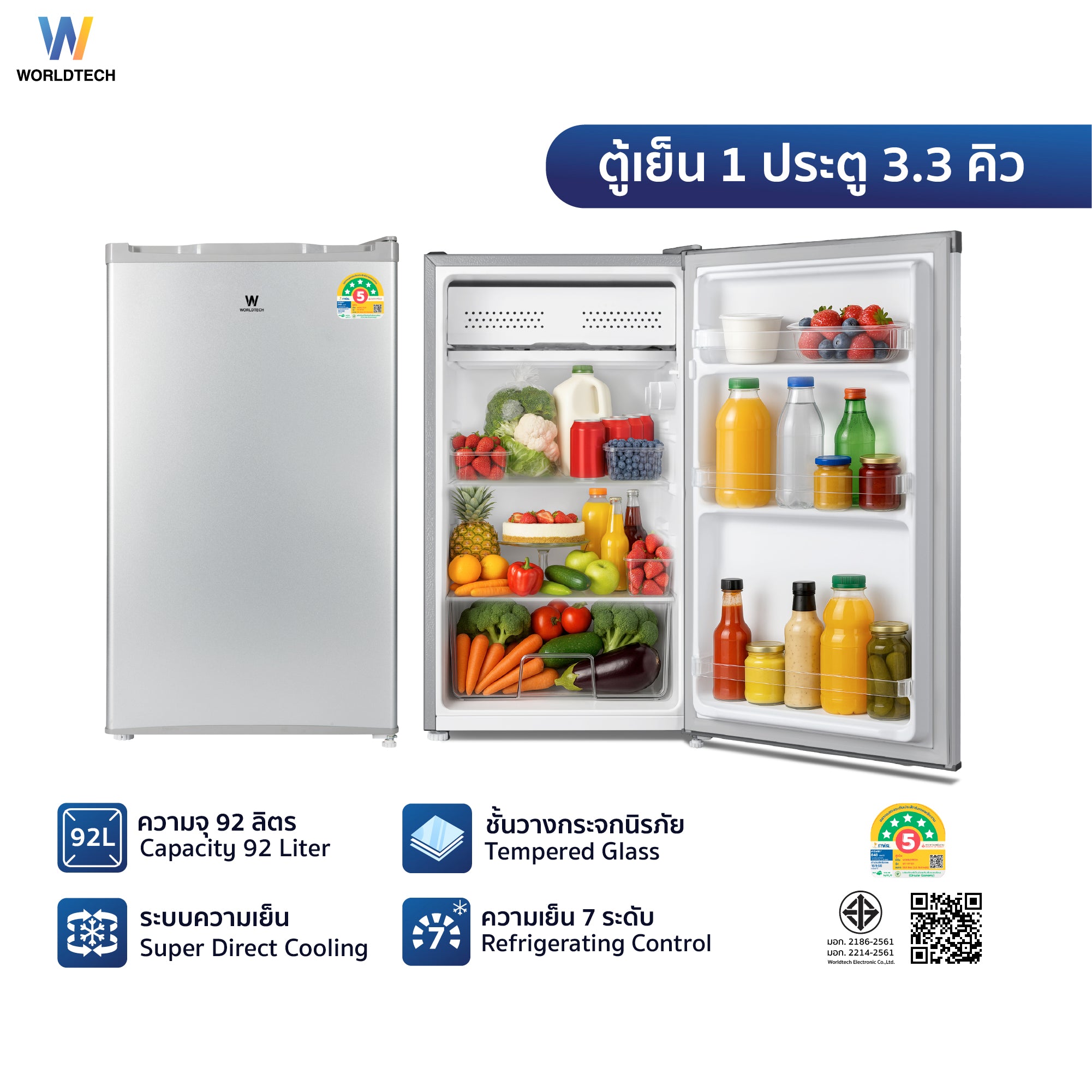 Worldtech ตู้เย็น 3.3 คิว ความจุ 92 ลิตร ตู้เย็นขนาดเล็ก รุ่น WT-RF101