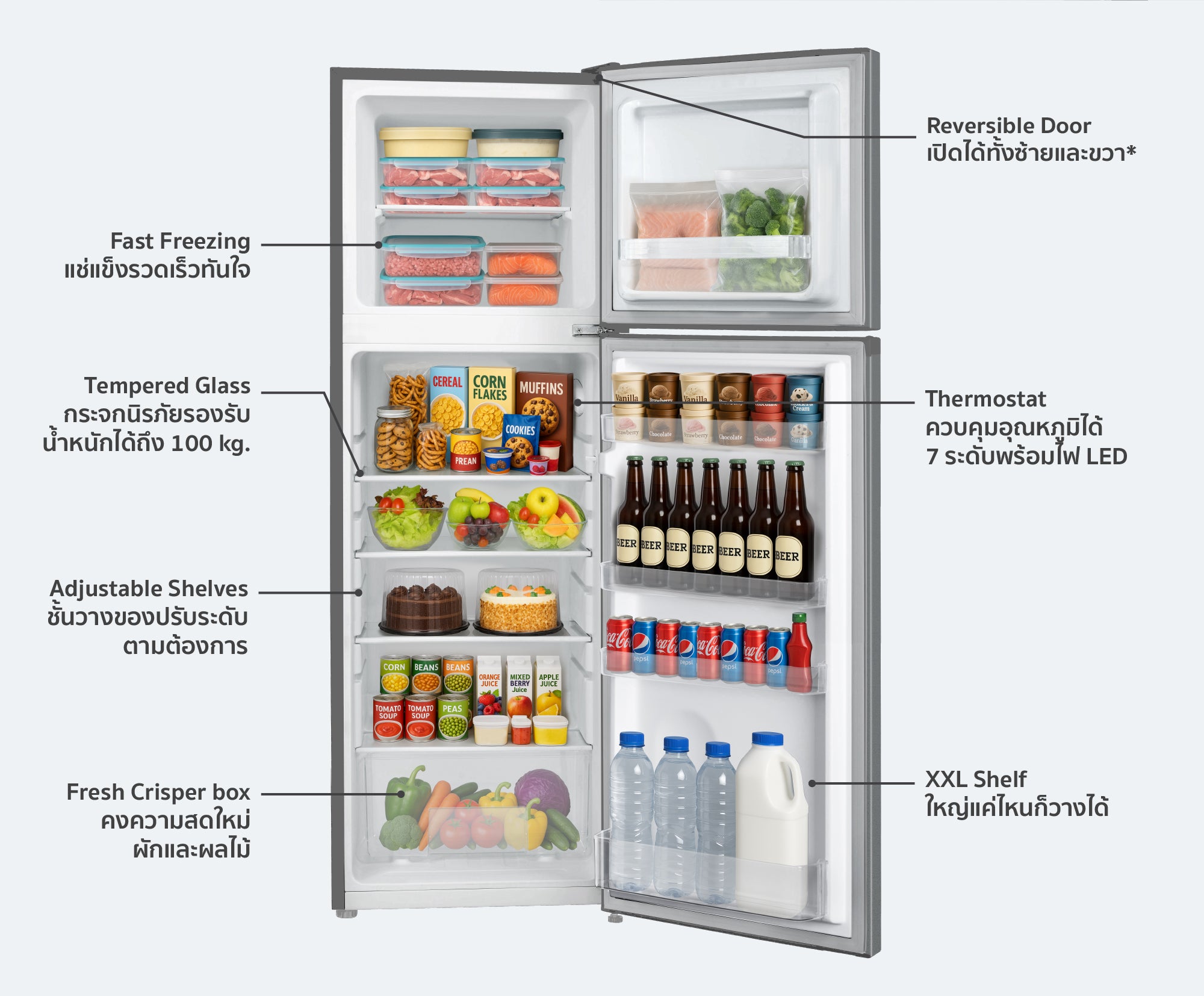 • ระบบละลายน้ำแข็ง: ละลายน้ำแข็งด้วยตนเอง (Manual Defrost)