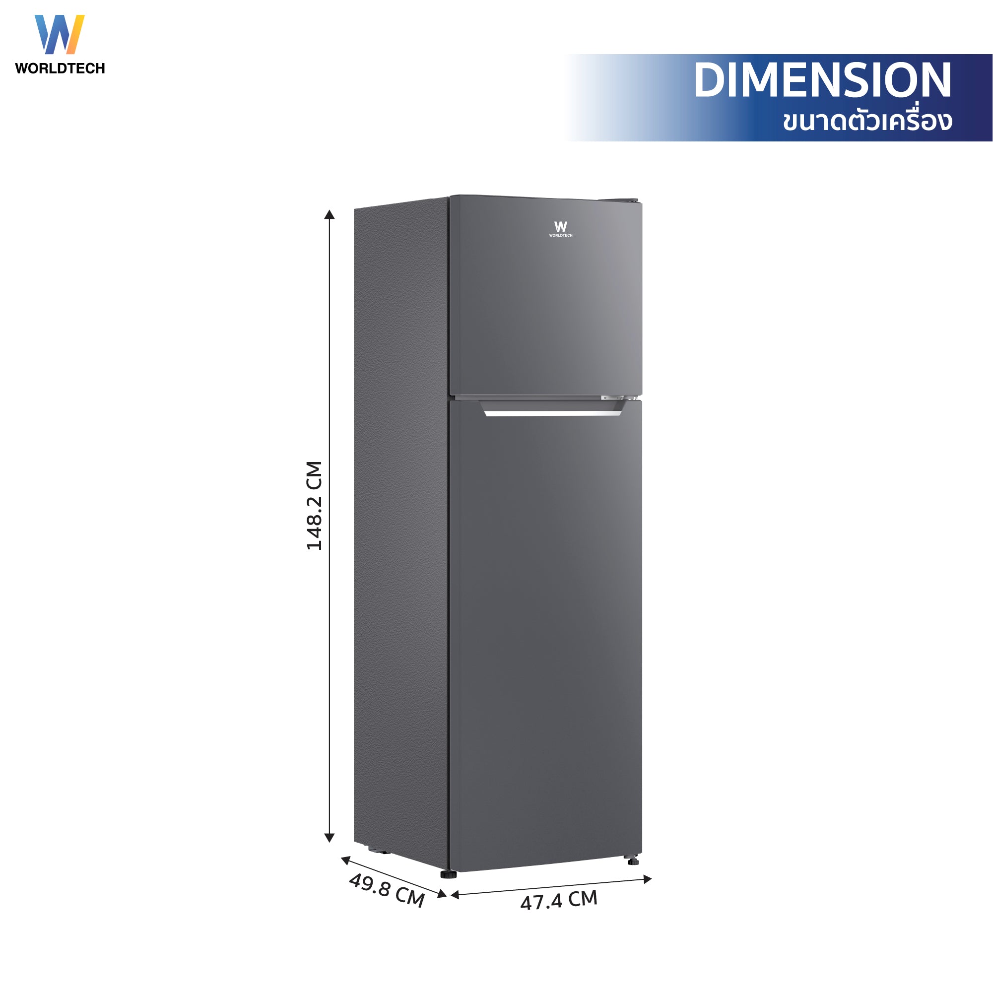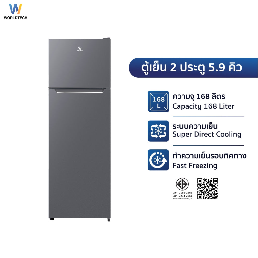 ตู้เย็น 2 ประตู Worldtech 5.9 คิว 168 ลิตร รุ่น WT-MRF-172