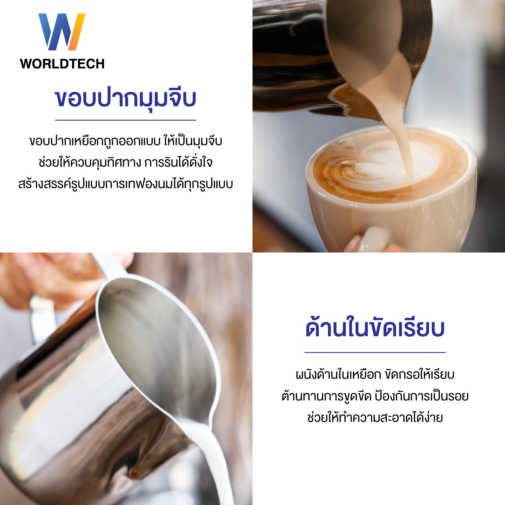 ✅ Worldtech เหยือกตีฟองนมสแตนเลส โถตีฟองนม ขนาด 350 ml.