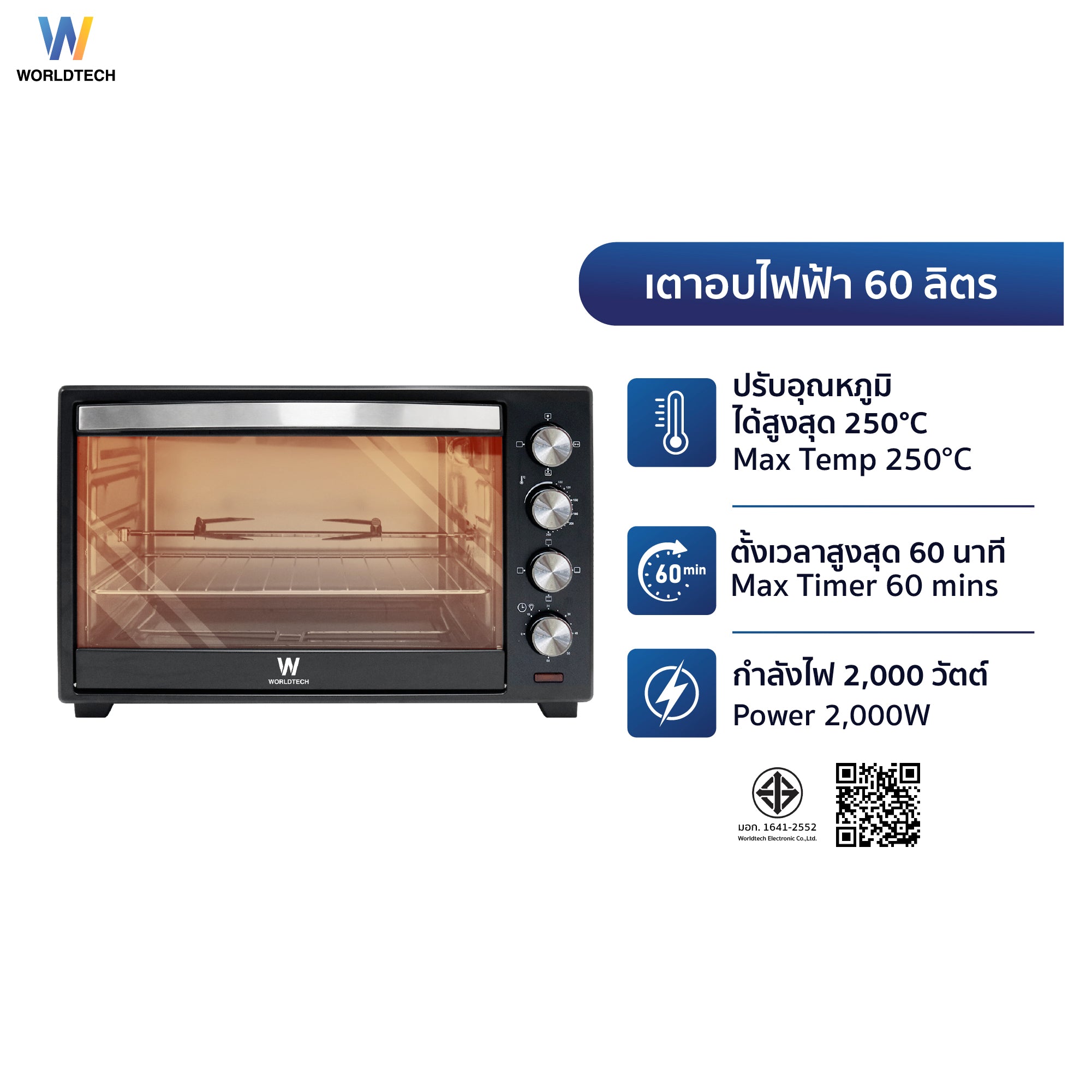 Worldtech เตาอบไฟฟ้า Oven 60L รุ่น WT-OV60L_BLK ขนาด 60 ลิตร รับประกัน 1 ปี